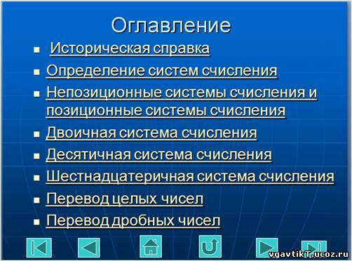 Интерактивный курс <<Системы счисления>>. Автор: курсант группы 11СВ Каспийского института морского и речного транспорта Махаев Владимир. Научный руководитель: Колегов К.С. Выполнен в 2013 г. Просмотреть онлайн.